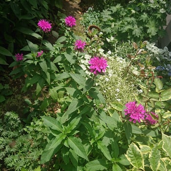 初夏から真夏にかけて咲くモダルナは、ベルガモットというハーブの仲間で、写真で見てもあまりピンとこないかもしれませんが、実際に育ててみると魅力がいっぱいです。